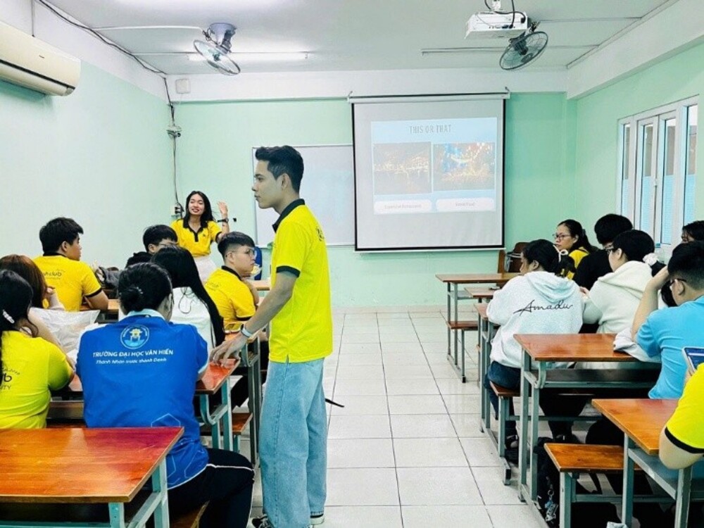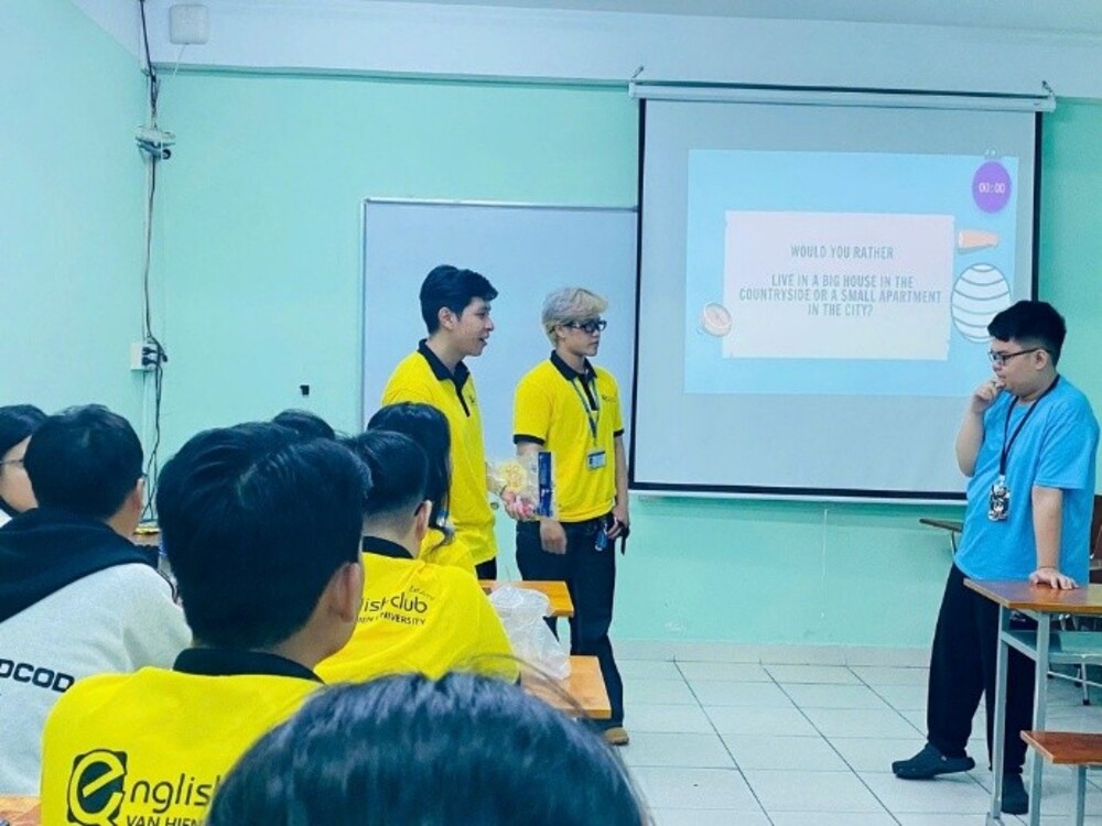 On March 29, 2026, the English Club of the Faculty of Foreign Languages at Van Hien held an academic session under the theme “Countries and Continents,” creating a dynamic and highly interactive learning environment for students. This is a regular club activity, which aims to provide students with opportunities to practice English communication in real-life contexts while also fostering critical thinking and teamwork skills.