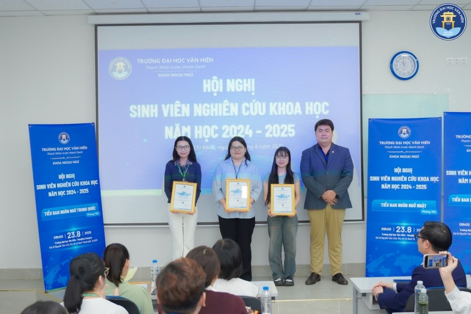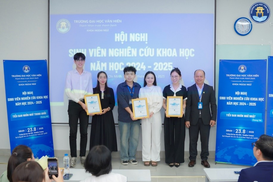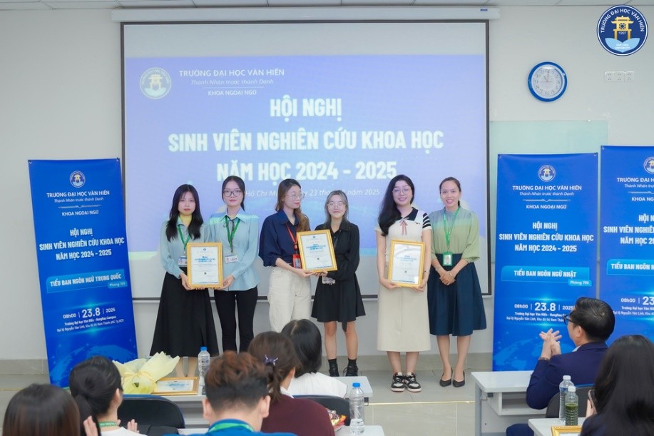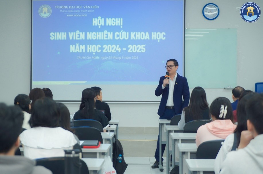 On the morning of August 23, 2025, the Faculty of Foreign Languages – Van Hien University solemnly organized the Symposium on Student Scientific Research, Faculty of Foreign Languages, Academic Year 2024–2025" with the participation of the Executive Board, the Board of Directors of the Faculty, lecturers and a large number of students majoring in English, French, Chinese and Japanese.