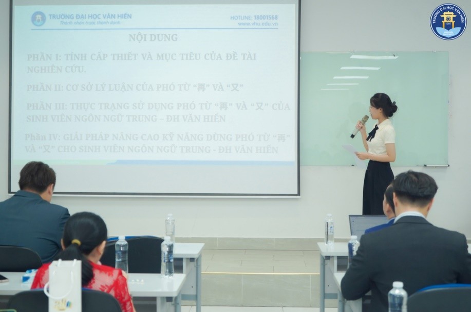 In opening remarks, Dr. Le Si Hai – Executive Director of Van Hien University, Dean of the Faculty of Foreign Languages – emphasized the role of scientific research in academic development and encouraged students to continue to promote the spirit of creativity and lifelong learning.
